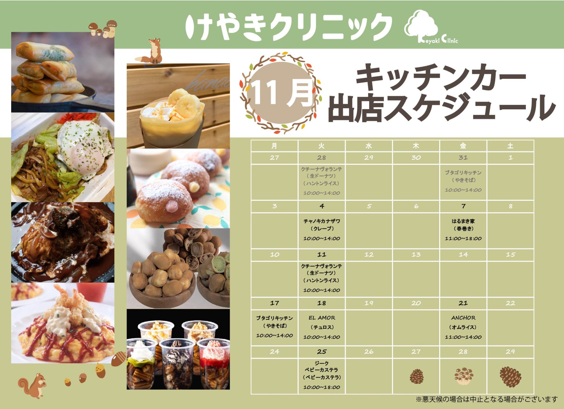 11月のキッチンカー出店予定日をお知らせします。