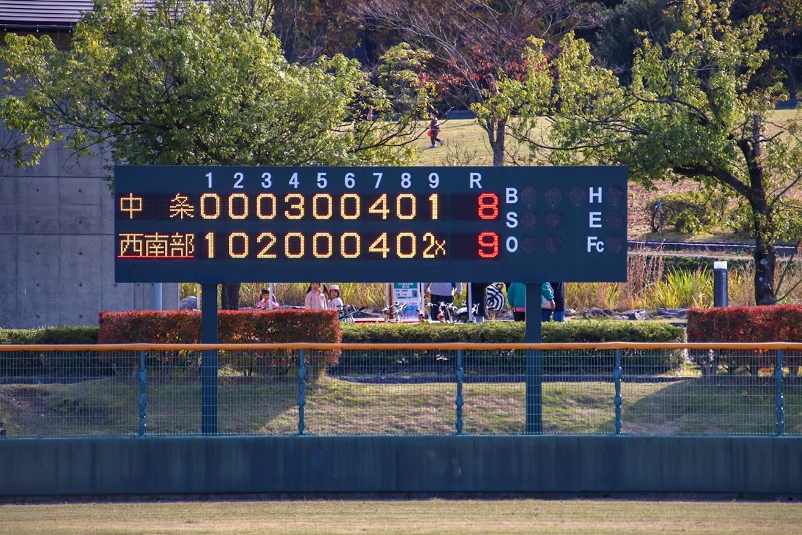 11月15日(土)、県新人学童野球選手権大会の決勝戦が行われ、西南部サンボーイズ(金沢支部)が中条ブルーインパルス(河北支部)と対戦し、9–8(9回タイブレーク)という大接戦の末、勝利を収めました。