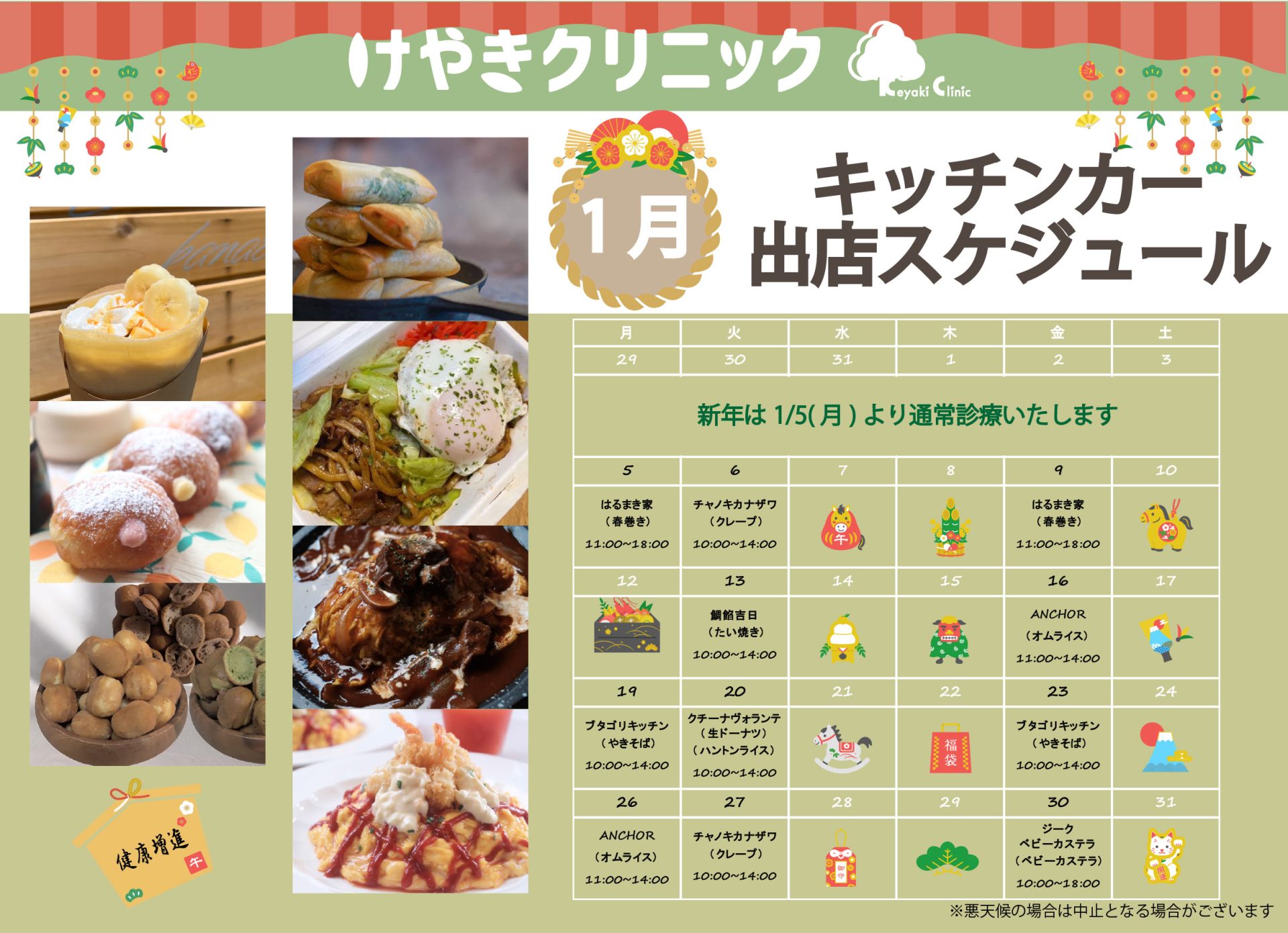 1月のキッチンカー出店予定日をお知らせします。