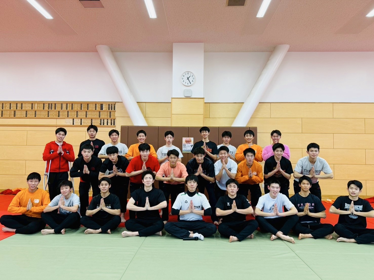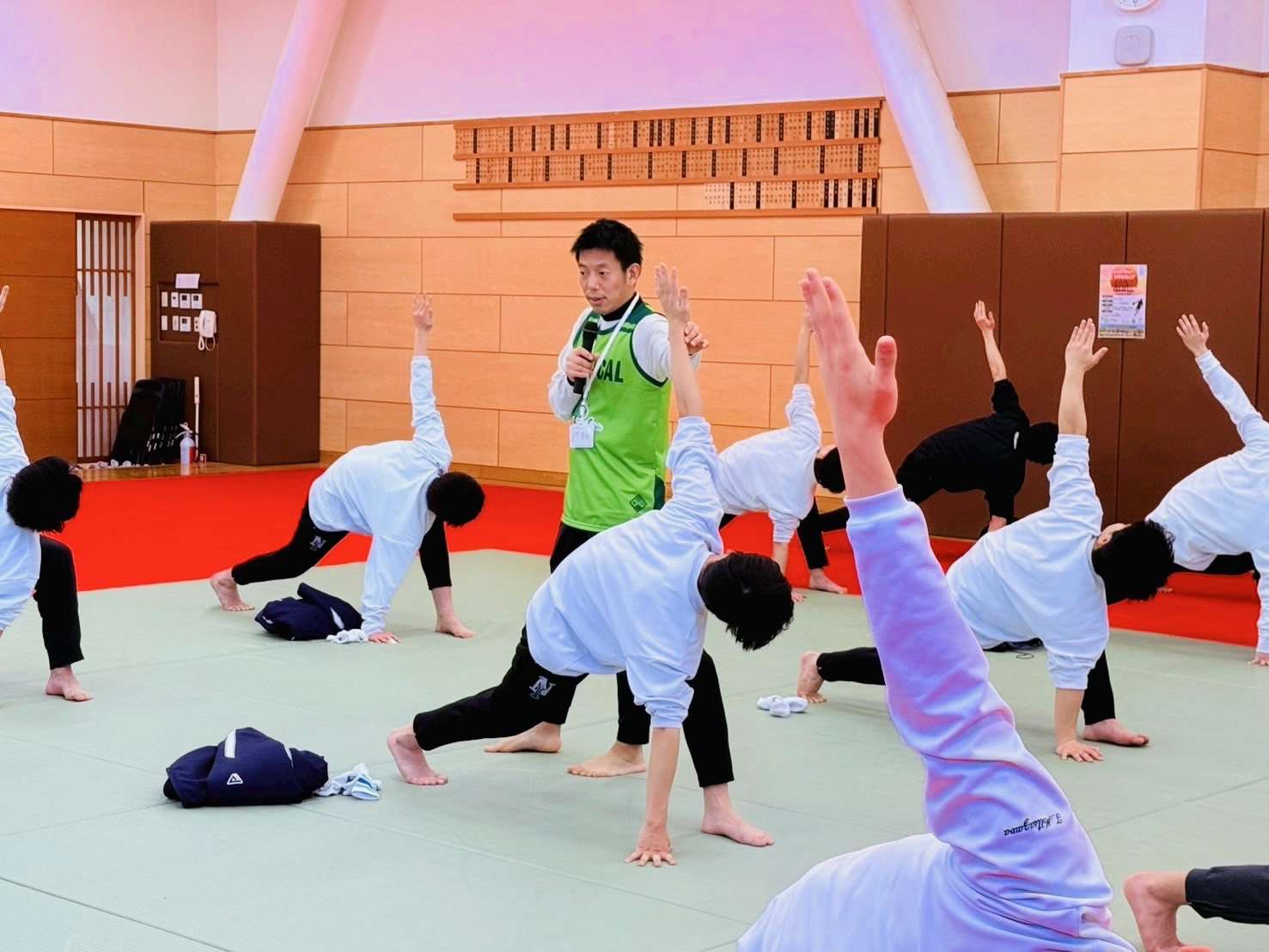 ヨガトレーニングは、参加チームの選手を対象に、講師は当院の理学療法士が担当し、集中して取り組んでいました。
