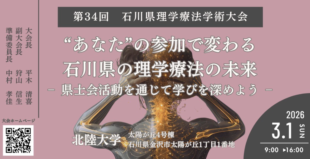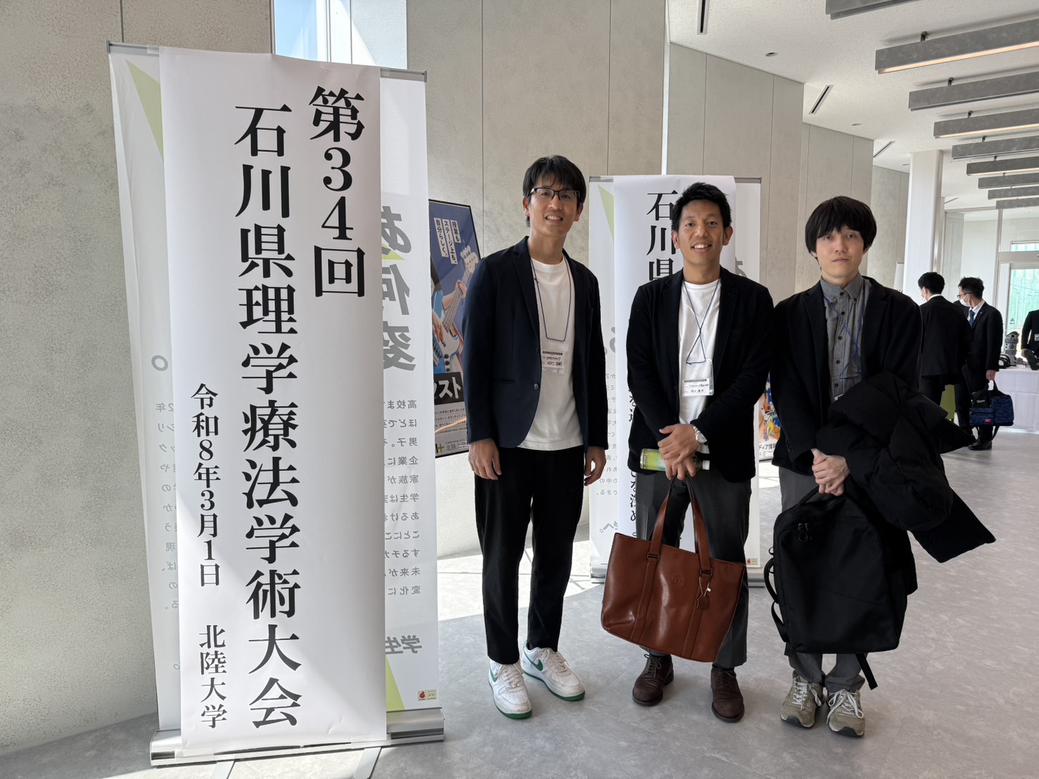 2026年3月1日、北陸大学 太陽が丘キャンパスで開催された「第34回石川県理学療法学術大会」に、当院の理学療法士である間所、清水、上野が参加いたしました。