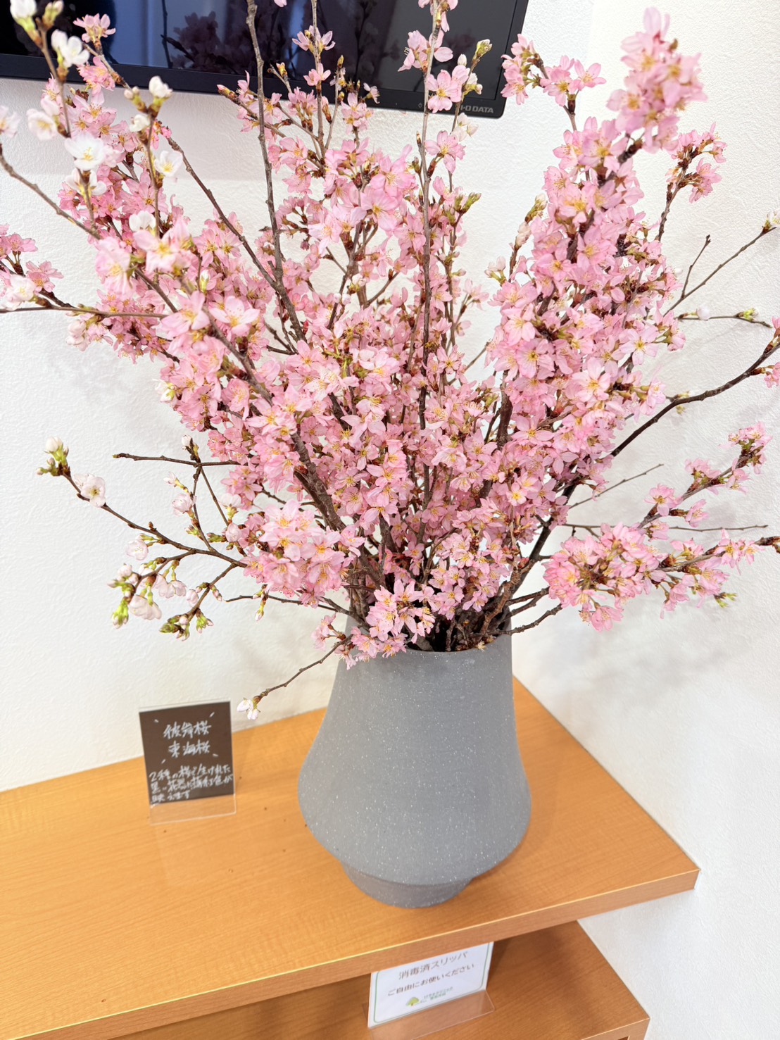 今週は東海桜と彼岸桜の2種の桜で生けてあります。