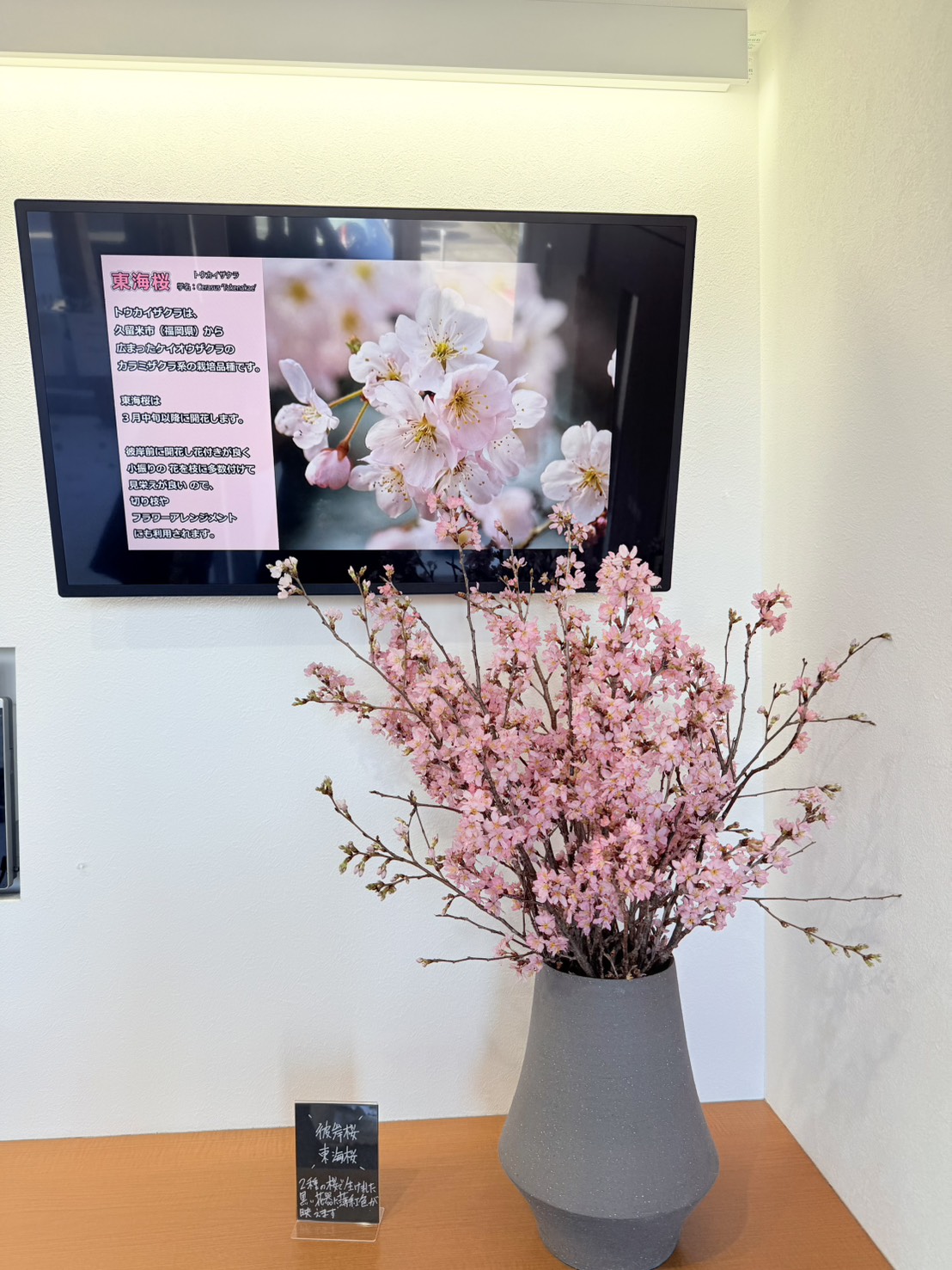 桜は種類や咲き方によって印象が少しずつ変わるため、週に1回ほど花を入れ替えながら、約1か月にわたり院内で春の彩りを楽しんでいただけるようにしています。